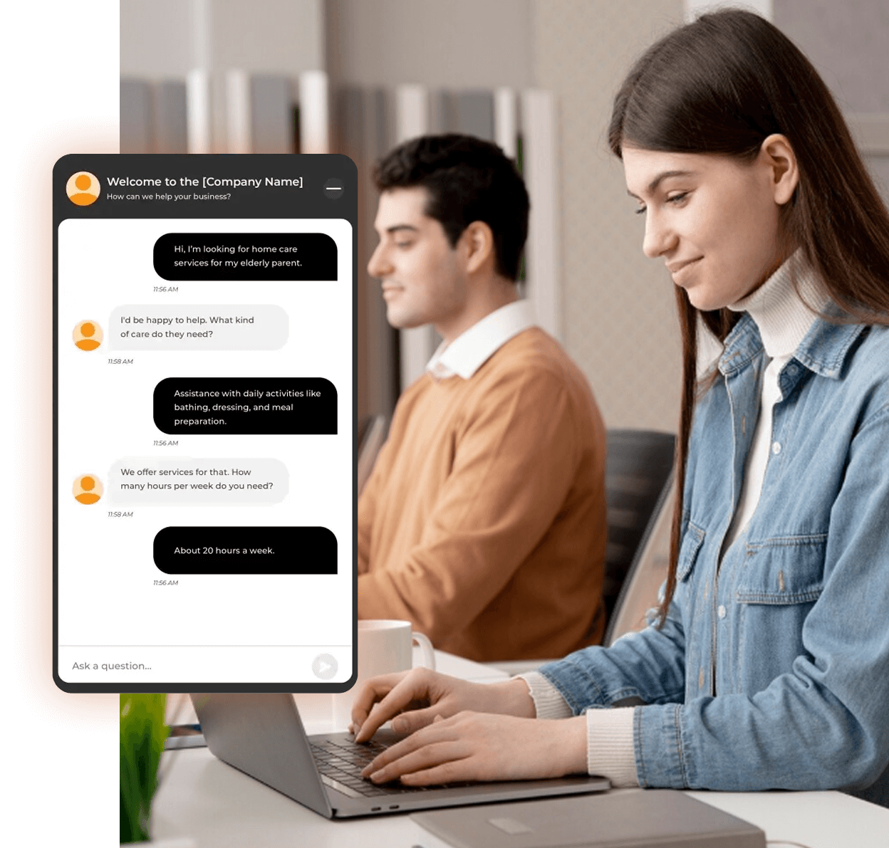 A trained professional greets the visitor in real time, offering a warm, human touch that builds trust from the very first message.